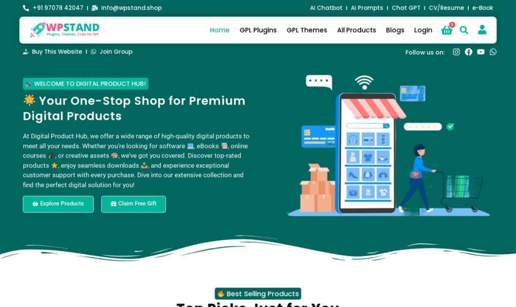 High Converting Digital Product Selling Wordpress Website Template with 2000+ Products